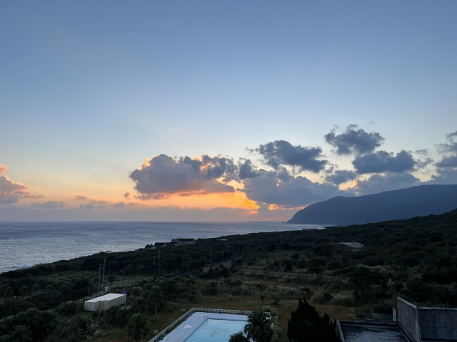 太平洋はもちろん、島南端の小岩戸ヶ鼻や八丈島灯台を一望でき、夜は満天の星空、冬の昼間は運が良ければクジラの姿も見られます。
