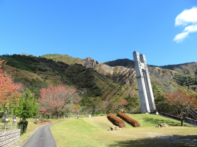 足尾ダムの下に作られた公園で、園内には地域のシンボルとして架設された県内初の人道用斜張橋「銅橋」があります。
