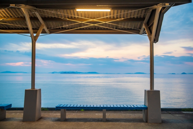 予讃線の無人駅でありながら、その絶景から「日本一海に近い駅」とも称されています。