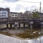 古門前橋は白川に架かる石造りの橋で、なだらかなアーチを描いています。