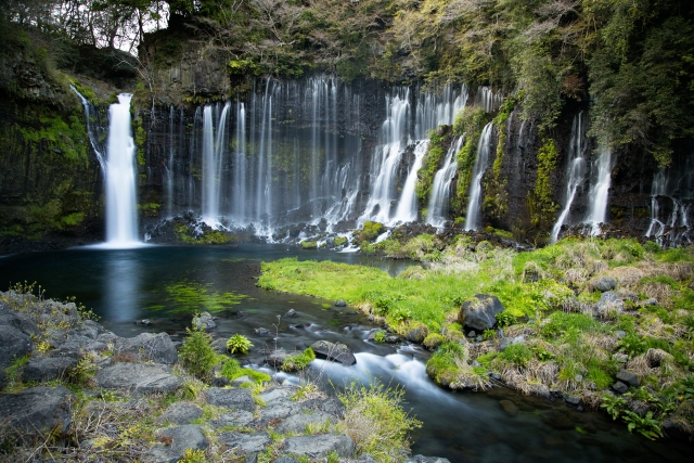 静岡県富士宮市にあるこの滝は、三島市から車で約1時間の距離にあり、世界文化遺産「富士山」の構成資産の一つに登録されています。