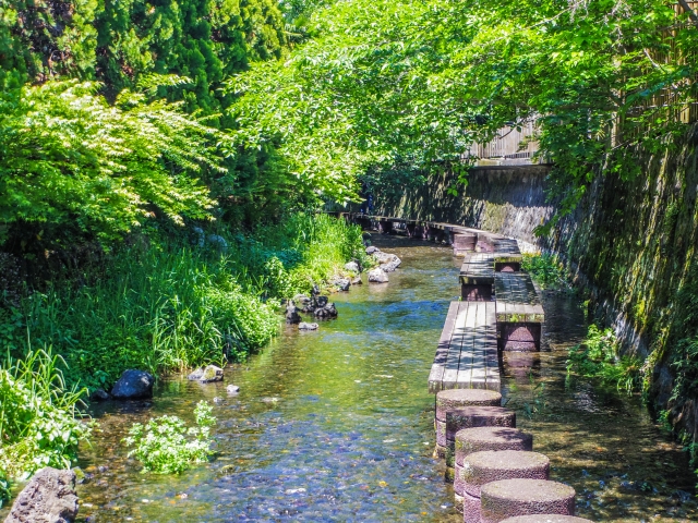 静岡県三島市を流れる源兵衛川は、富士山の湧水が湧き出す清流として知られています。