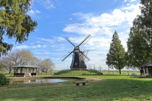 千葉県柏市にあるこの公園は、風車をシンボルとし、四季折々の花々が楽しめる花の名所として人気があります。