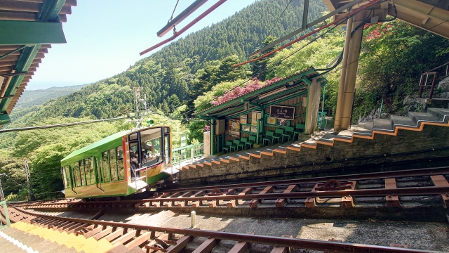 大山ケーブルカーを利用すれば、緑豊かな山中を往復しながら阿夫利神社下社まで気軽に行くことができます。